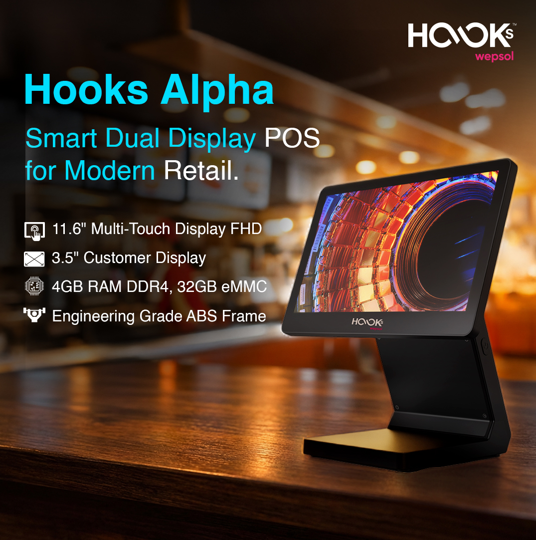 The "ALPHA" designation emphasizes the advanced and lightweight nature of the Hooks Alpha PoS Terminal, making it an even more appealing solution for businesses seeking efficiency and convenience in their point-of-sale operations.